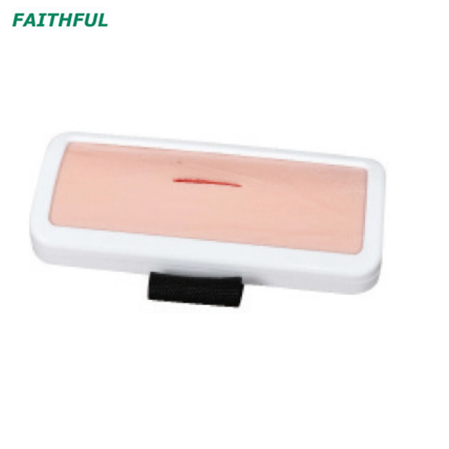 Este modelo portátil se puede utilizar para la práctica de sutura. La piel puede reemplazarse.