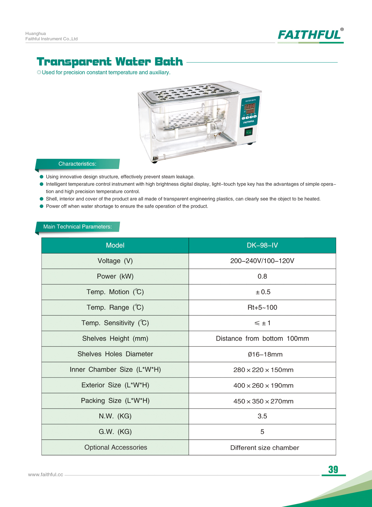 | Temperatura. Rango (℃) | RT+5 ~ 100 | ||||