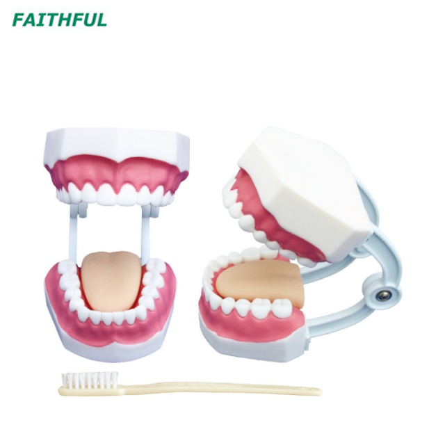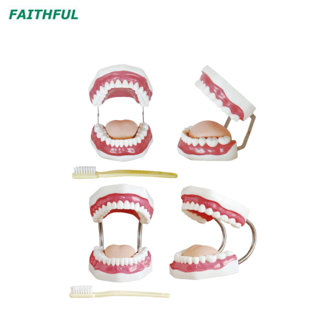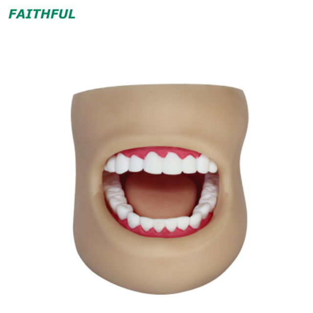 El modelo se está produciendo desde el tamaño del tamaño de la vida dental. Estructura anatómica que incluye: mejilla, palatina, dientes (corona), encías, arco dental superior e inferior, lengua. Demuestra la forma de los dientes y la limpieza y protección de la cavidad oral.