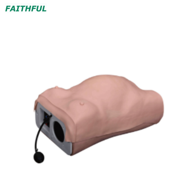 Este simulador demuestra palpación, auscultación del sonido del corazón del embrión, medición pélvica y enfermería mamaria