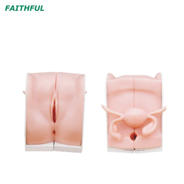 Este modelo muestra la sección anatómica de los genitales femeninos. Se puede demostrar cómo poner el pesario, cómo poner la membrana o la tableta de la medicina anticonceptiva, cómo poner y eliminar el DIU y cómo hacer el aborto inducido, etc.